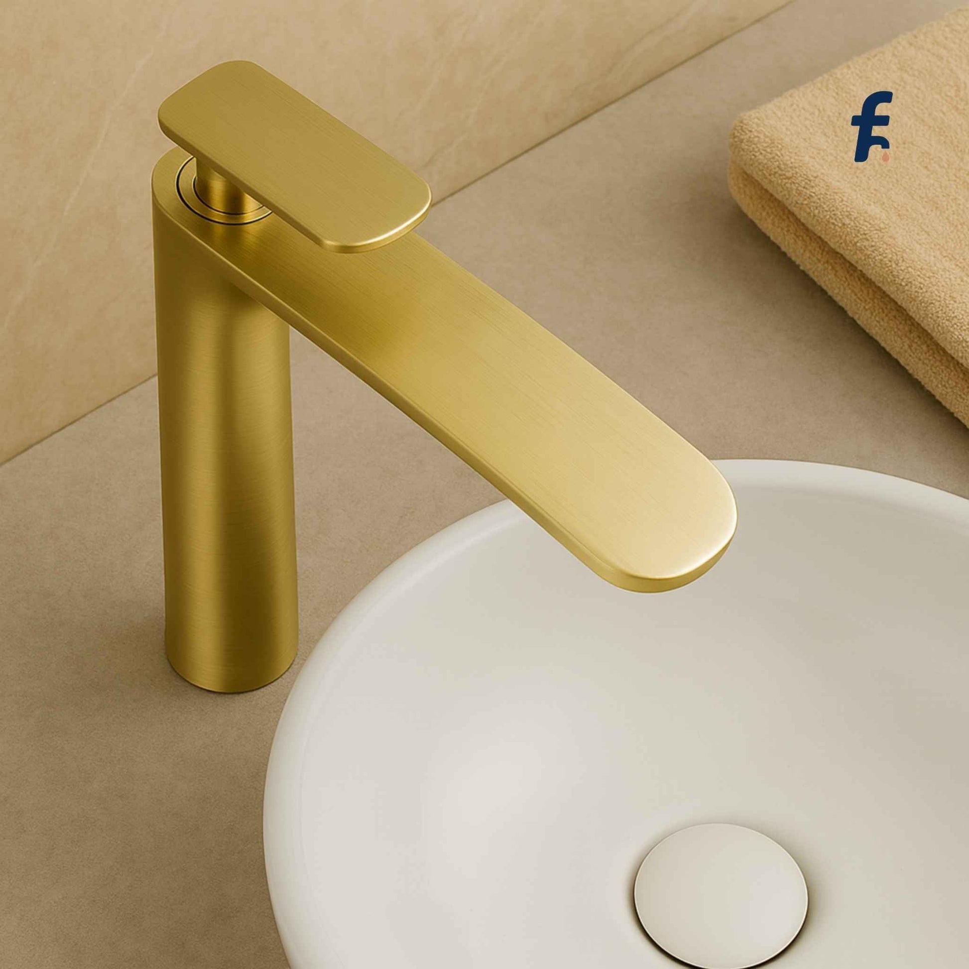 Brushed Brass Basin Faucet – Luxury Gold Tap for Modern Bathrooms