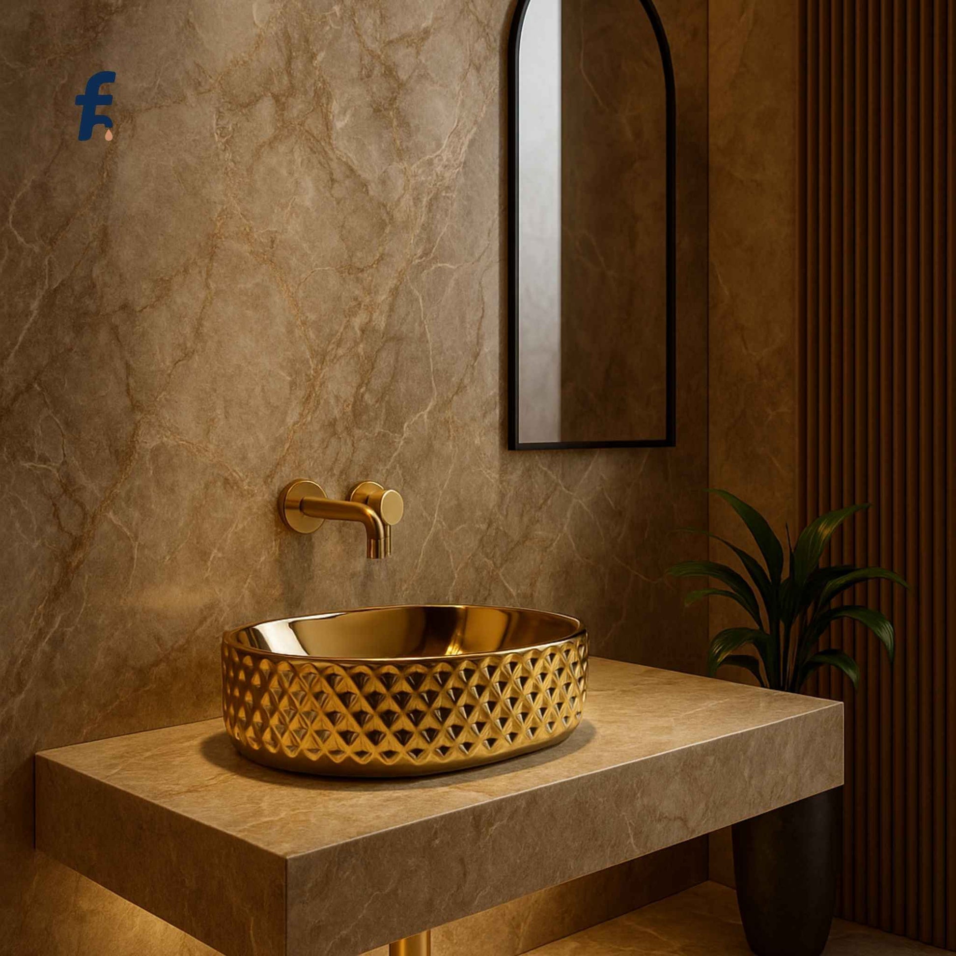 Transform your bathroom space with this eye-catching glossy gold wash basin — where style meets sophistication.